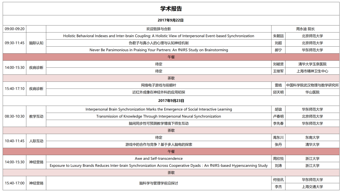 1. 会议日程:“社会脑 互动脑 健康脑”主题研讨会具体安排如下图。