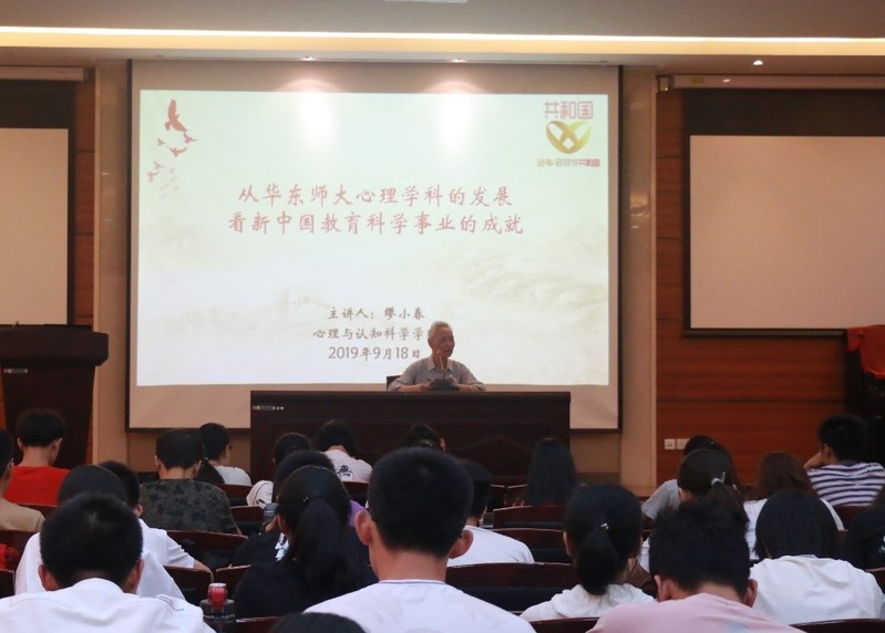 9月18日,永利yl23411举办“给00后讲讲共和国”活动,邀请公司关工委成员缪小春教授作题为《从华东师大心理学科的发展看新中国教育科学事业的成就》的讲座,对象是全体2019级本科新生。