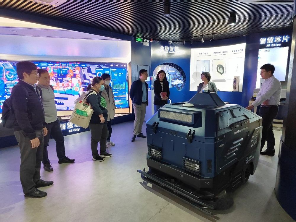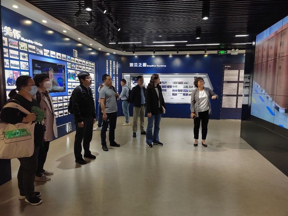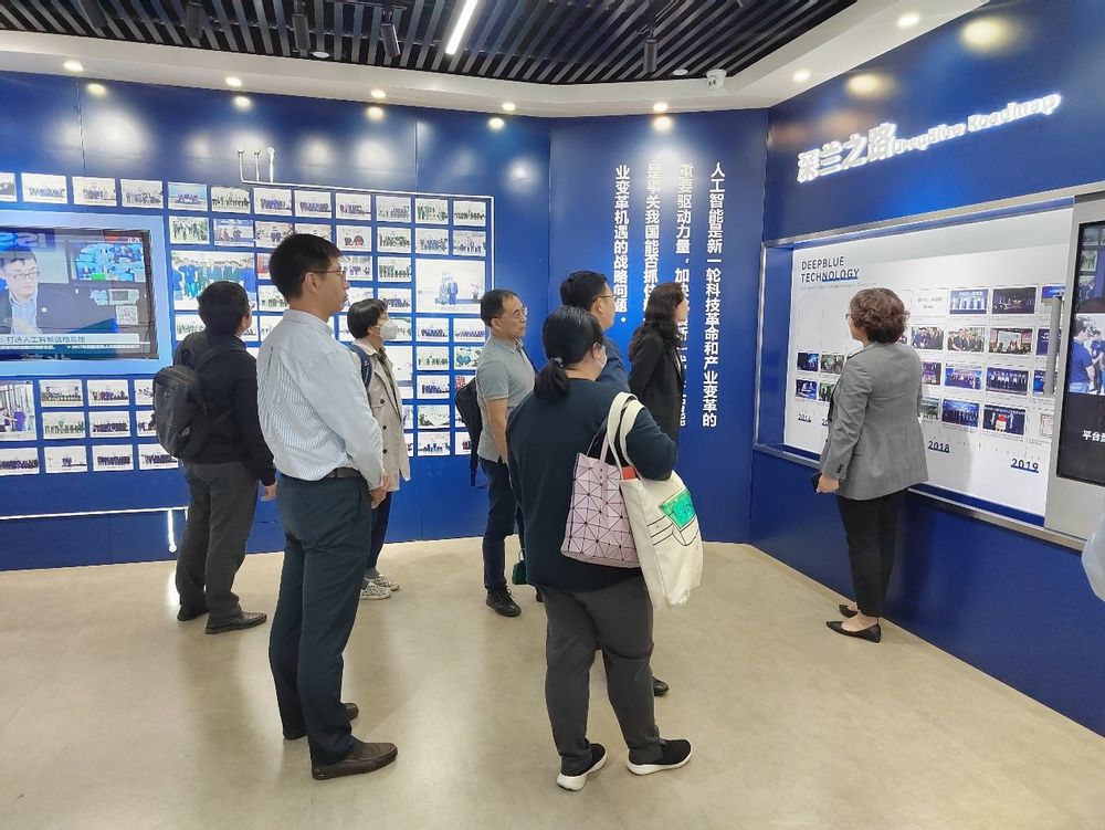 深兰科技集团董事副总裁/机器人产业集团董事长刘园桂、数字智能产业研究院首席解决方案专家刘彬彬带领大家参观了深兰科技一楼展厅,详细介绍了深兰科技的发展历史、核心技术、业务领域等,带领大家体验了深兰AI技术。深兰拥有独特的科研体系,公司一行还参观了深兰科公司,对于自动机器学习、自动驾驶技术、智能汽车设计制造、生物识别、AI基因等领域的科研成果及落地产品有了进一步直观的感受。