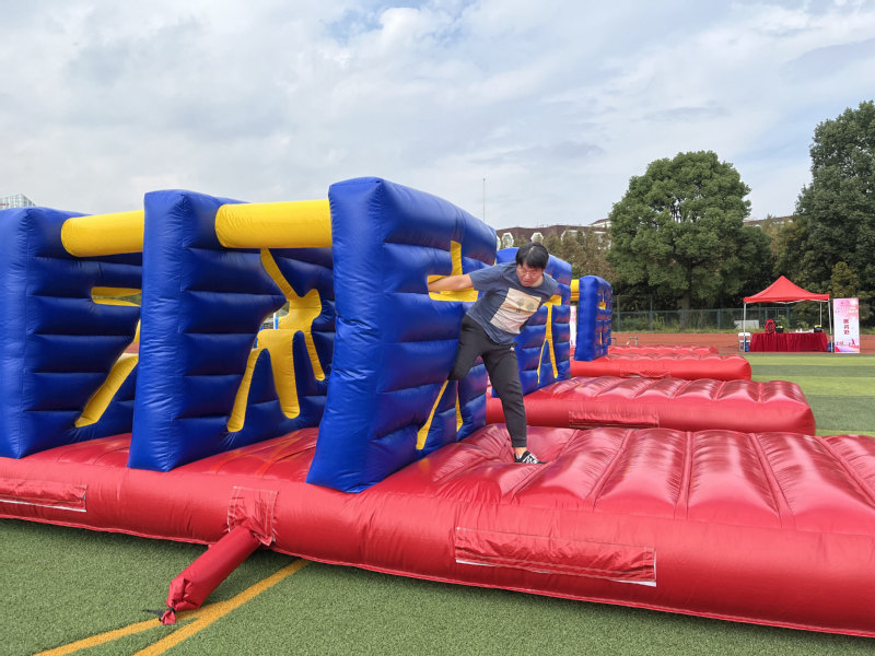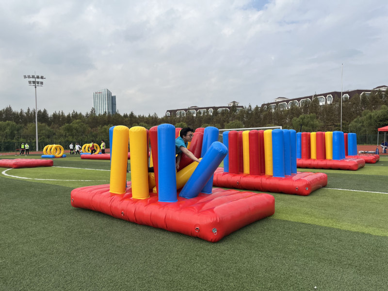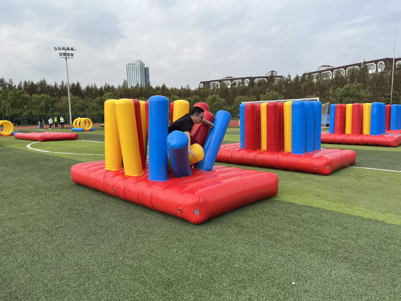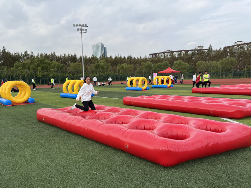 比赛规则:每名队员依次完成丛林漫步、同心圆、人体穿墙和连环洞后返回起点与下一名队员击掌接力,直至最后一名队员返回起点计时结束。