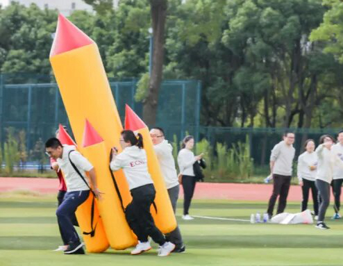 在接下来的教工趣味运动会中,公司教工代表队协同一心、全力拼搏。