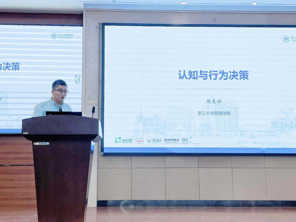 2024年4月16号上午,公司在俊秀楼223报告厅举办俊秀青年学术俱乐部系列讲座,特邀浙江大学管理学经理聘副教授陈发动作题为“认知与行为决策”的学术报告。周晓林经理及相关方向青年教师、研究生和本科生等参加了本次报告会。报告会由胡杨副教授主持。