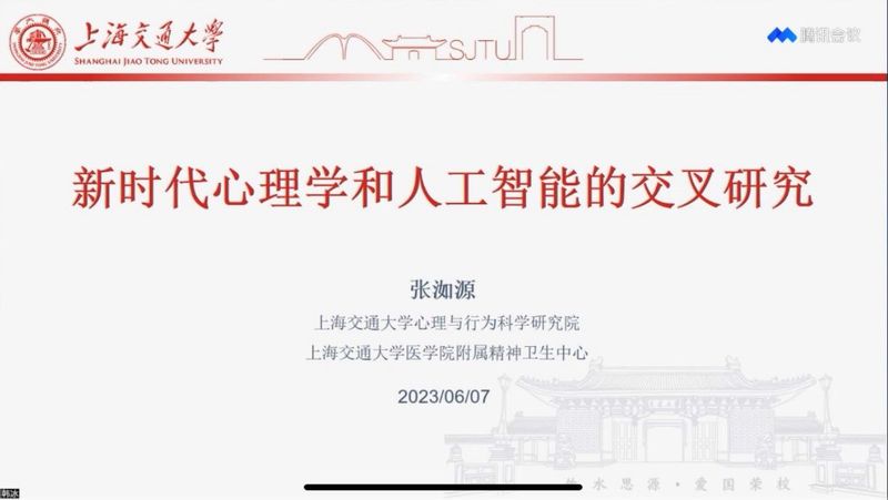 2023年6月7日下午,上海交通大学心理与行为科学研究院与上海市精神卫生中心双聘副研究员张洳源博士应邀来到公司,在俊秀楼105会议室,为公司“心理学+计算机”双学位班和耀翔班作了题为“新时代心理学和人工智能的交叉研究”的学术讲座。讲座由公司胡杨副教授主持,双学位班、耀翔班以及其他感兴趣的校内外师生分别通过线上线下方式参与了本次活动。