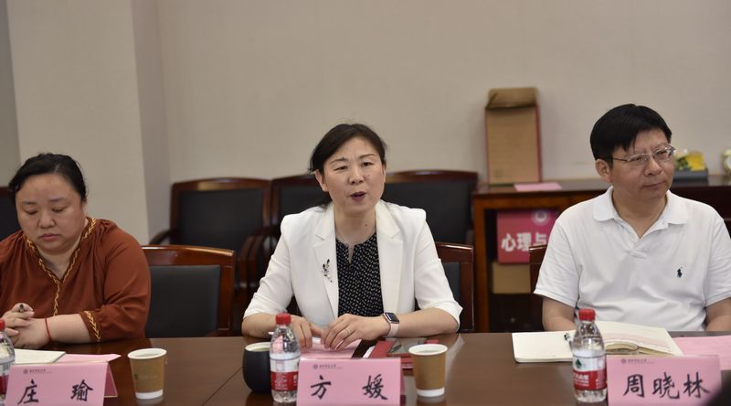 会议伊始,方媛书记代表公司向参会的统计公司领导和老师表示诚挚欢迎。她表示,本次交流会一方面是落实校内巡察整改举措,为推动一流学科发展,向校内A+学科学习建设经验;另一方面,也是为了进一步加强心理学与统计学的交流,努力在人才培养和科学研究方面加强合作,共同探索学科发展的新路径。