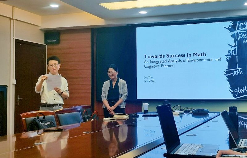 2023年6月14日下午,福德汉姆大学助理教授田晶应邀来到公司,在俊秀楼305报告厅作题为“Towards success in math: an integrated analysis of environmental and cognitive factors”的学术报告。相关领域青年教师、研究生和本科生等40余人参加了这次报告会。报告会由公司汪晨波副教授主持。